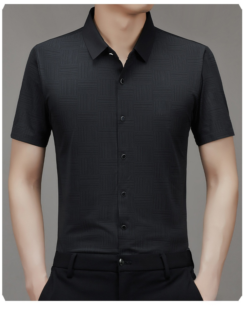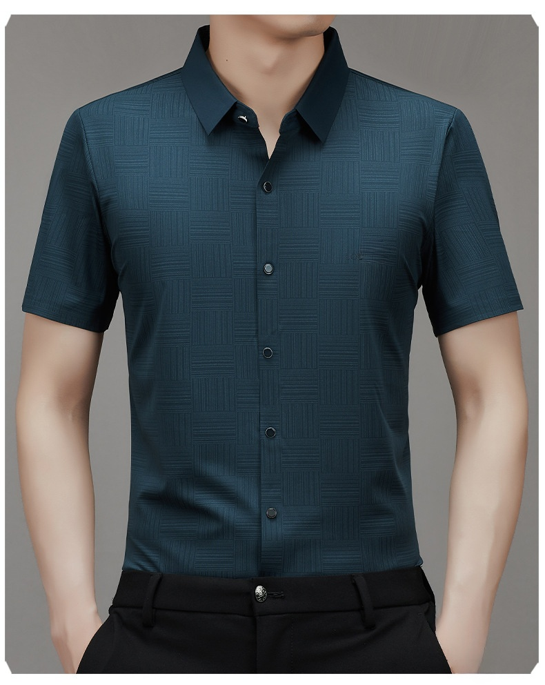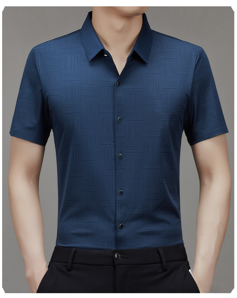 남성 중청년 헴 고탄력 아이스 비즈니스 캐주얼 반팔 셔츠