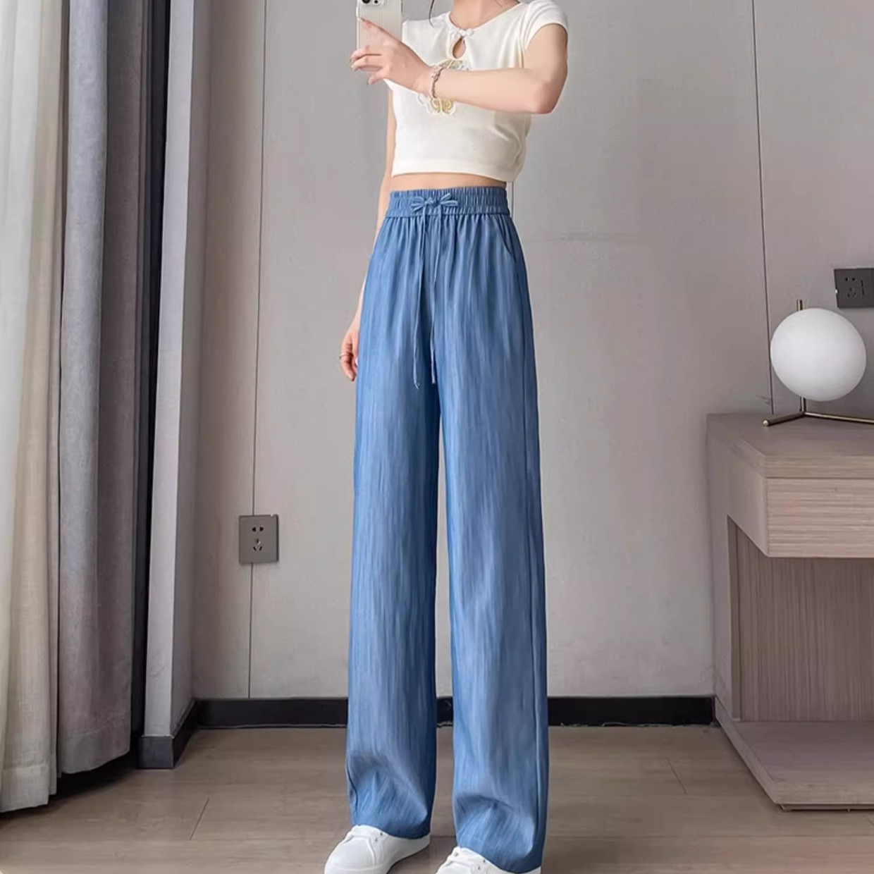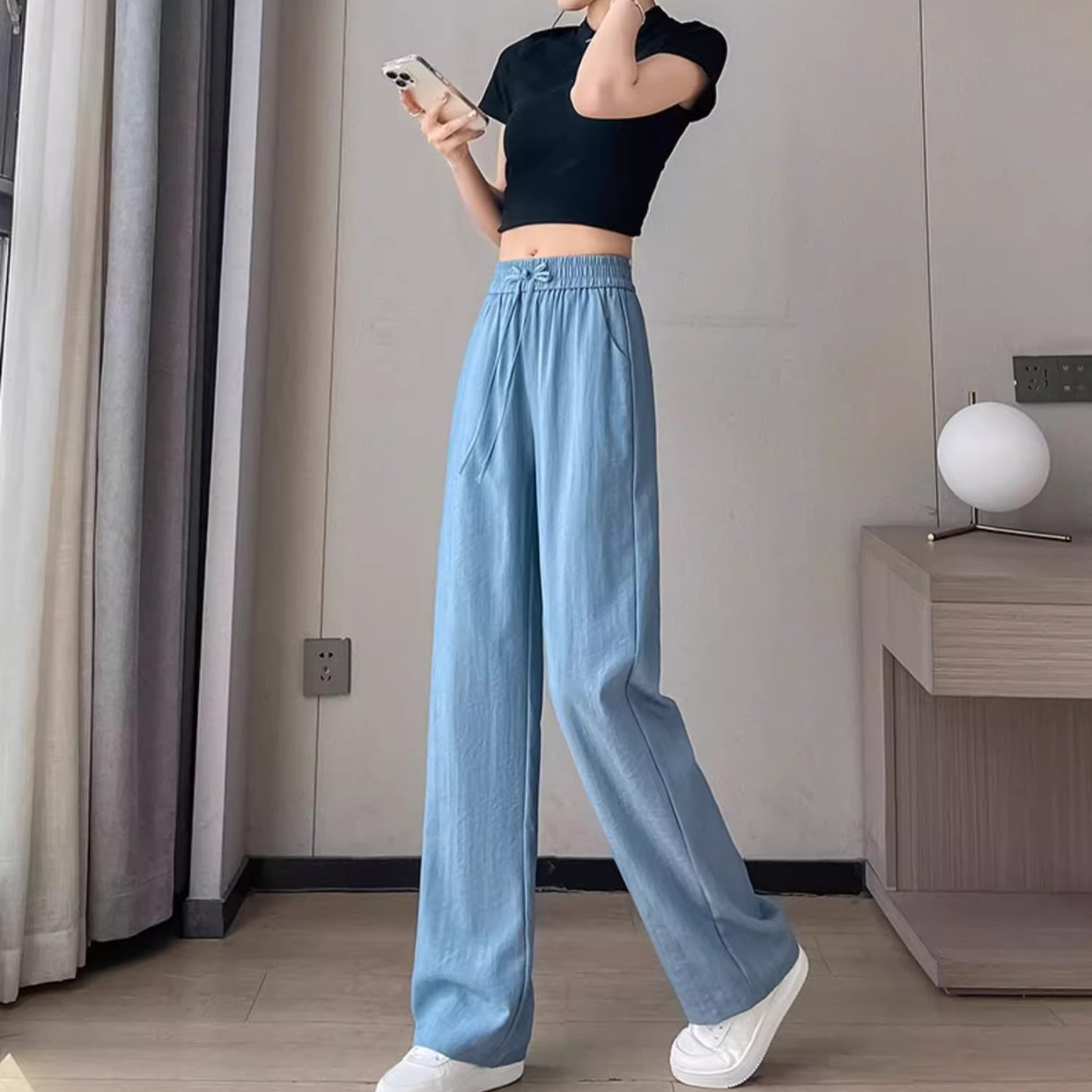 텐셀 와이드 일자 팬츠 슬림핏 여 여름 아이스 와이드 팬츠 뉴 차이나 쿨 텐셀 데님 팬츠